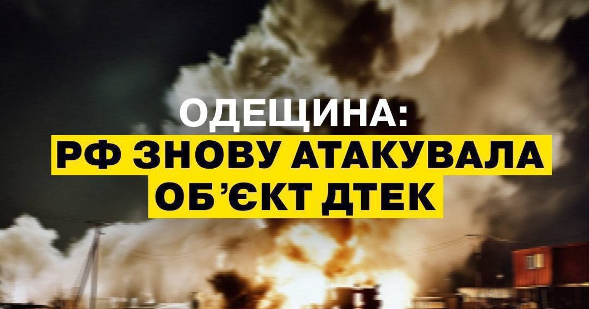 Как отмечается, ночью РФ нанесла удар по энергетическому объекту ДТЭК в Одесской области.