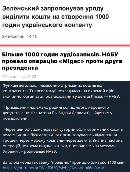 - Президент Владимир Зеленский отреагировал на операцию антикоррупционных органов "Мидас" по разоблачению коррупции в сфере энергетики. Глава государства подчеркнул, что "каждый, кто строил схемы, должен получить четкий процессуальный ответ".