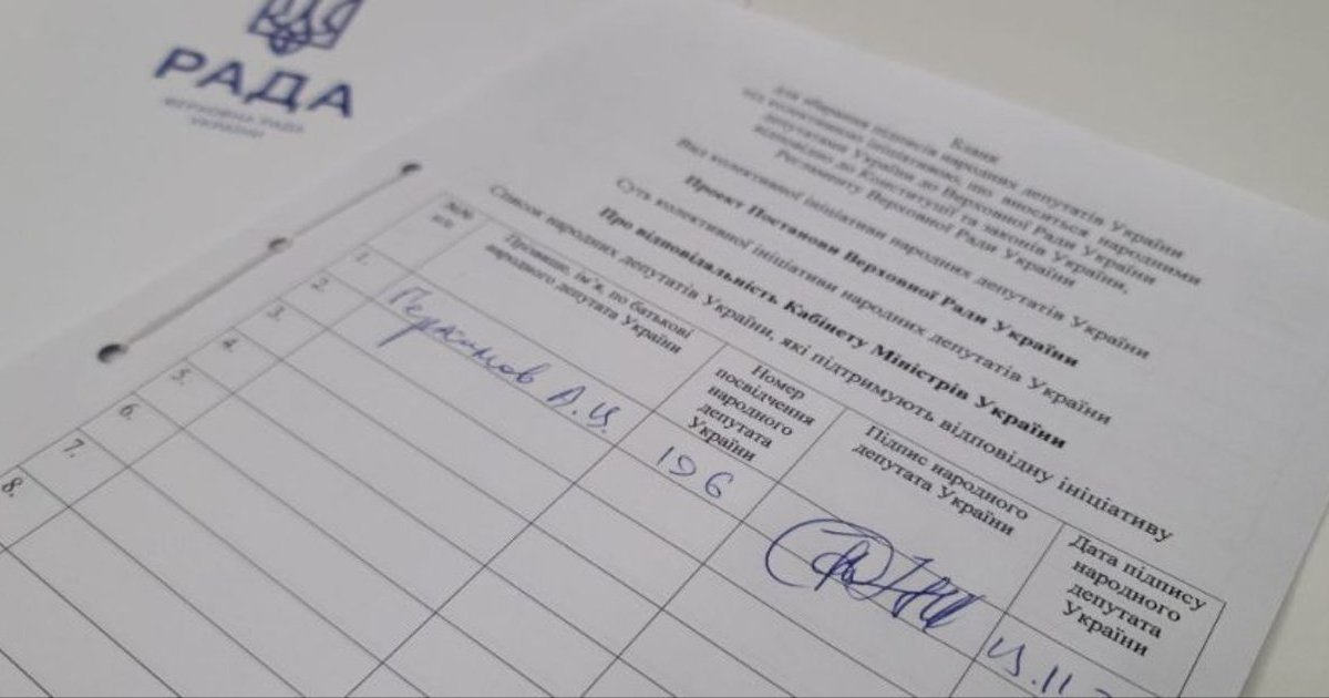 "Европейская Солидарность" получила подписные листы и начинает сбор подписей народных депутатов за отставку правительства.