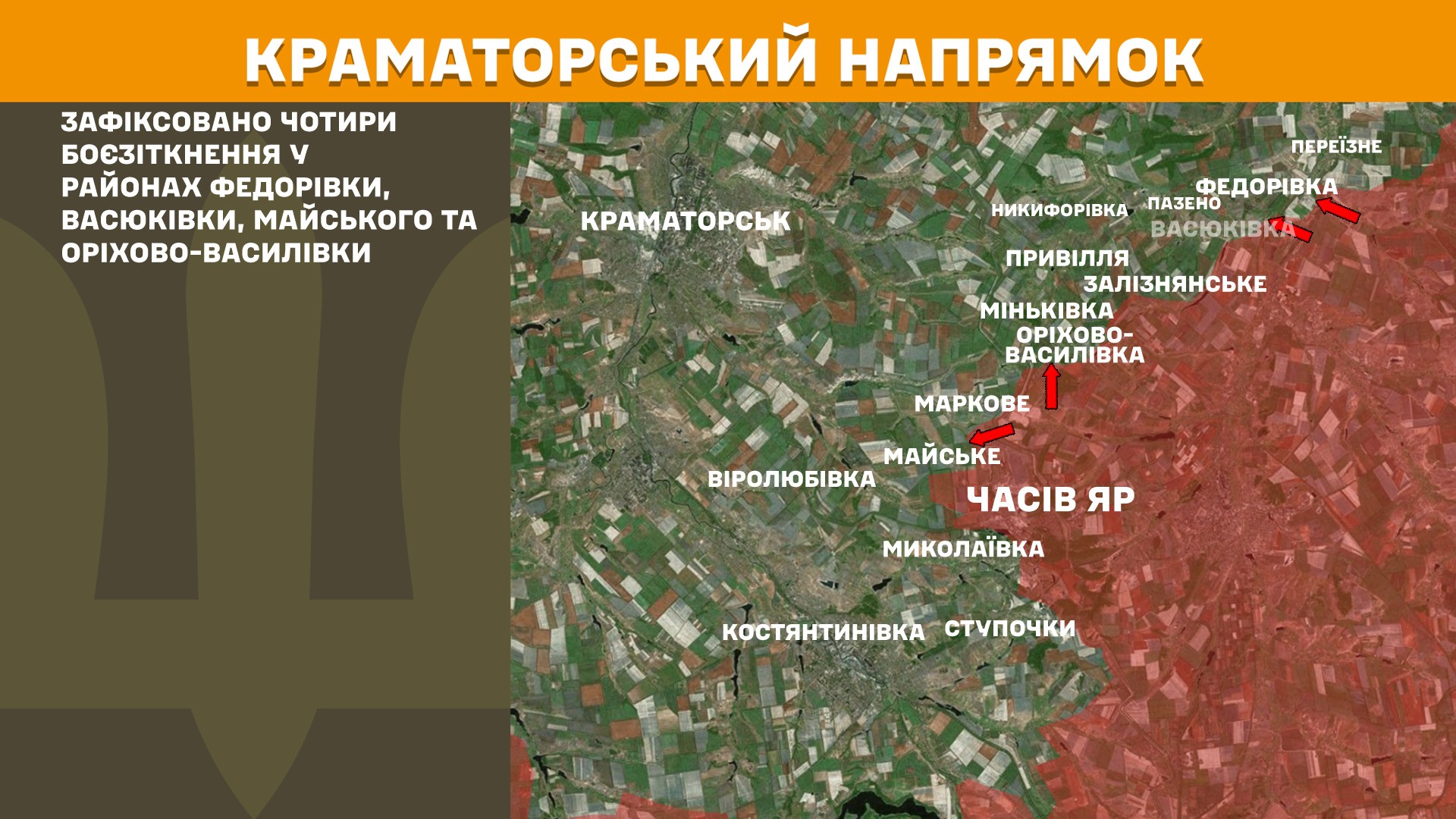 На Краматорском направлении зафиксировано четыре боестолкновения в районах Федоровки, Васюковки, Майского и Орехово-Василевки.