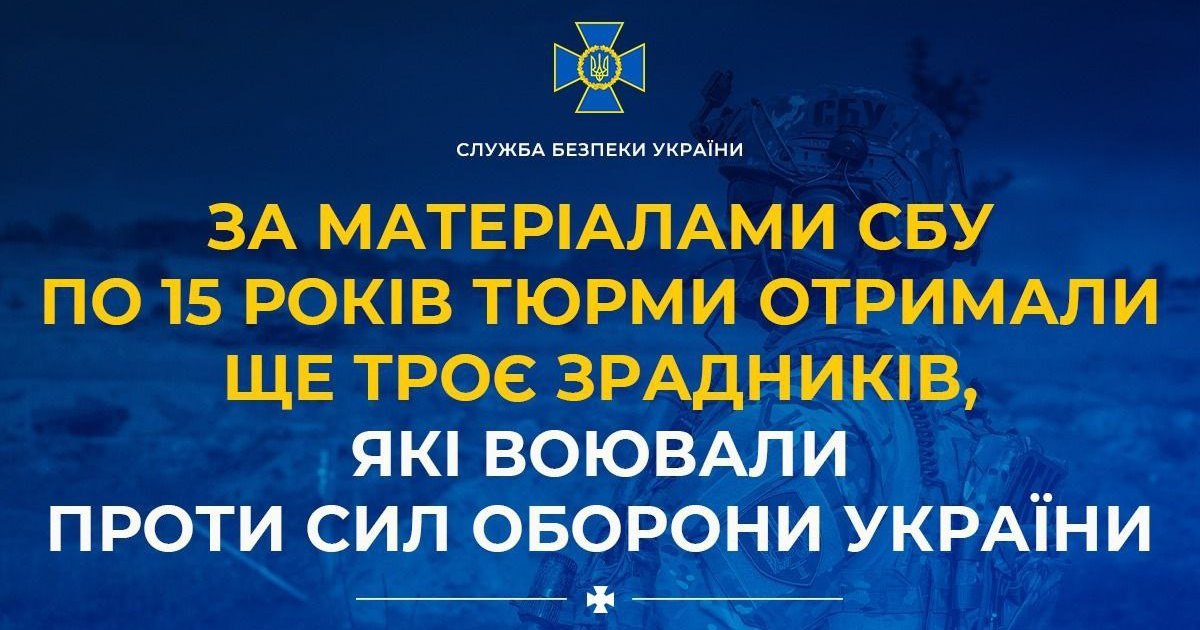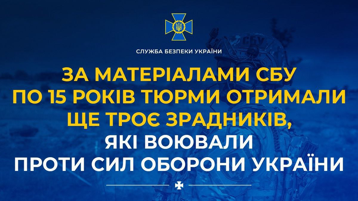 По материалам СБУ по 15 лет тюрьмы получили еще 3 предателя, которые воевали против Сил обороны Украины.