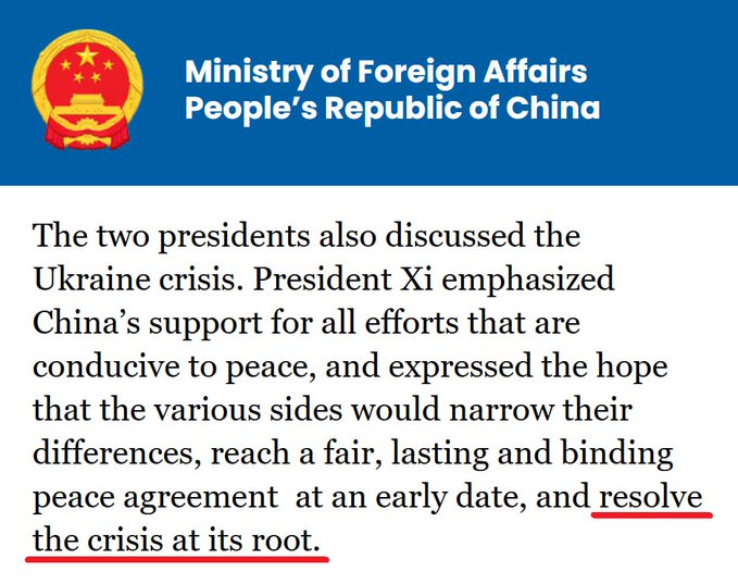 Тобто Китай прямо дав зрозуміти, що підтримає лише російський варіант "угод" про мир".