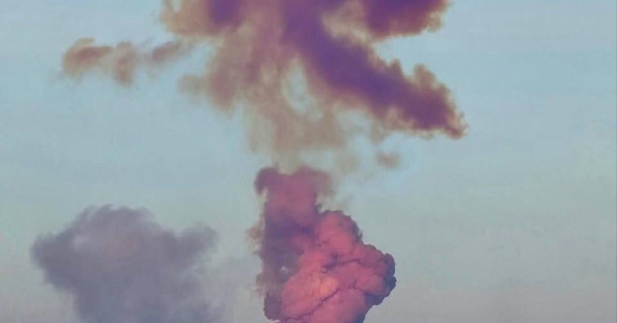 На имеющихся в социальных сетях кадрах видно, как она падает почти сразу и взрывается, подняв в небо огромный столб дыма фиолетового цвета.