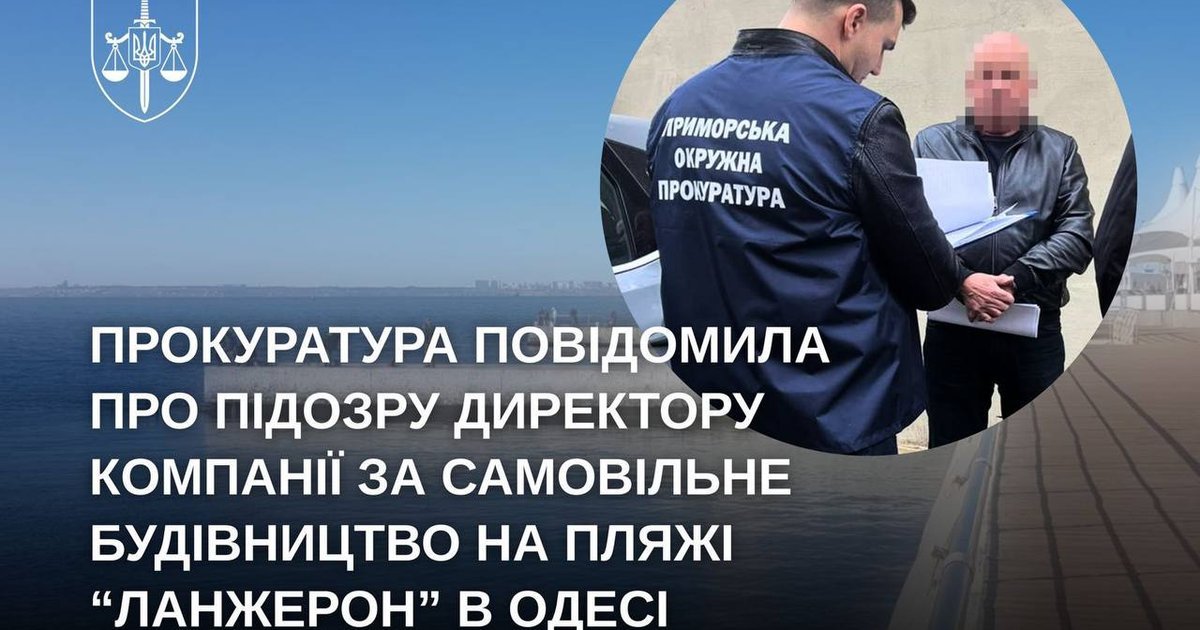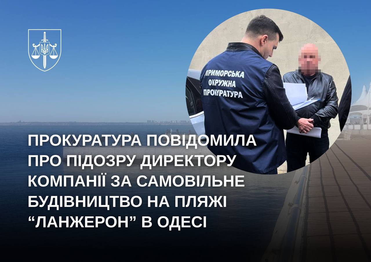 Директору одесской компании объявлено подозрение за самовольную застройку территории на пляже "Ланжерон", где он, по данным следствия, построил часть отеля и зоны отдыха на земле громады, нанеся ущерб более 20 млн грн.