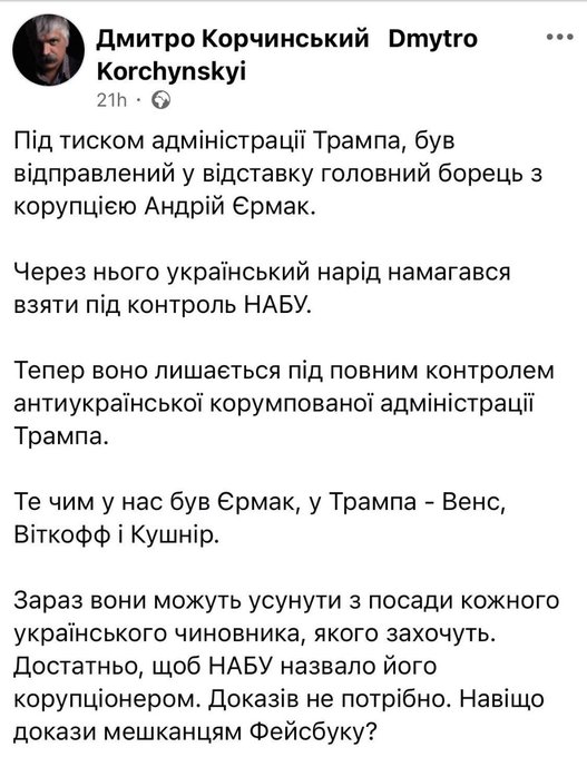 "Не уволены чиновники, которые непосредственно задействованы на пленках. Не уволен глава финмониторинга, который покрывал коррупцию, лично участвовал в хищениях средств государственного бюджета в Полтавской области для строительства фортификационных сооружений на Покровском направлении. Думают, что удалось отвлечь внимание. Не получится", – подчеркивает лидер партии "ЕС".