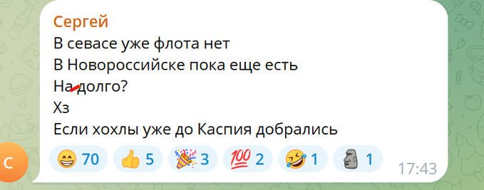 Так одним махом русню лишили човна важливого для боротьби з підводними та надводними кораблями противника, захисту військово-морських баз, ще раз показали, що в Новоросійську більше не сховаєшся і головне для українців - мінус один носій Калібрів, якими системно обстрілюють українські міста.