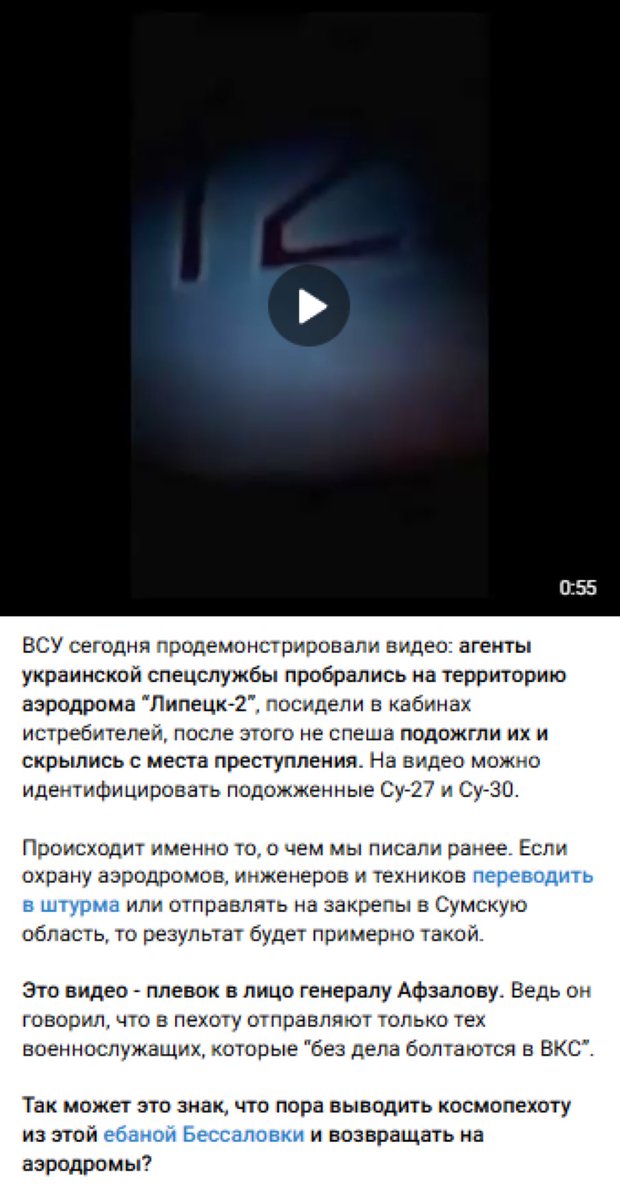 @ "посидели в кабинах истребителей, после етого не спеша подожгли их и скрьілись с места преступления."
