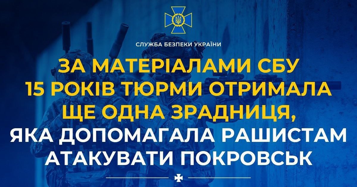 15 лет тюрьмы получила еще одна предательница, которая помогала рашистам атаковать Покровск