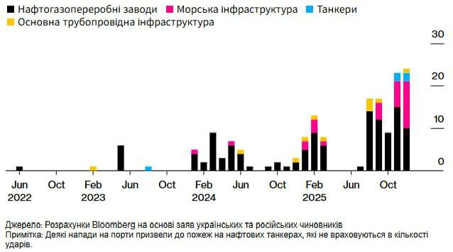 В декабре Украина установила рекорд ударов по энергетическим объектам России, - Bloomberg. ИНФОГРАФИКА