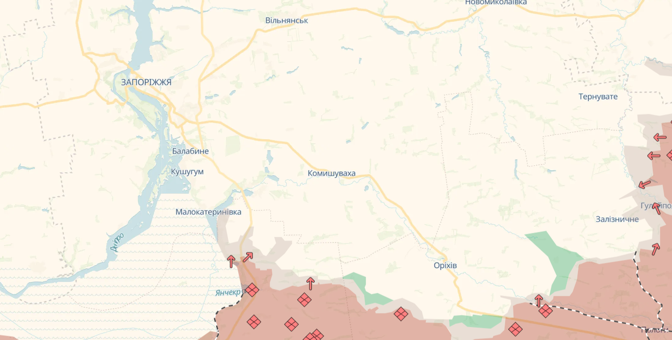 Согласно карте DeepState к Малокатериновке уже приблизилась "серая зона". Однако, по словам Волошина, до врага еще есть определенное расстояние.
