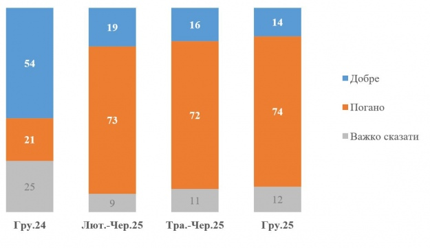 По сравнению с маем-июнем показатель почти не изменился: тогда так считали 72% украинцев.