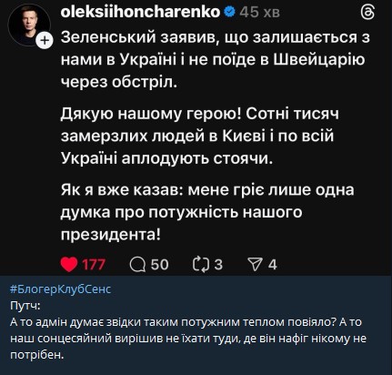 Чи його Міндіч з Цукерманом та Бакановим годують та зігрівають? Чи може зігріває регулярна двушеска на Москву?