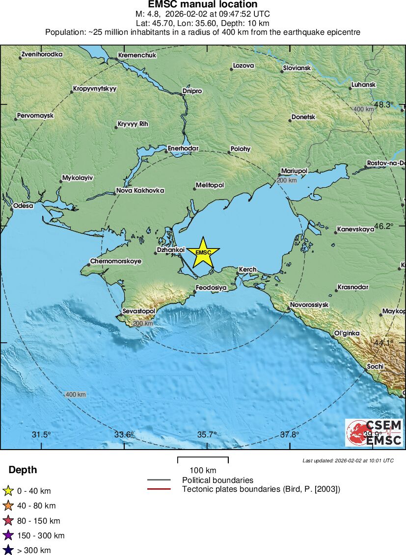 Землетрясение магнитудой 4,8 зафиксировали возле оккупированного Крыма. КАРТА