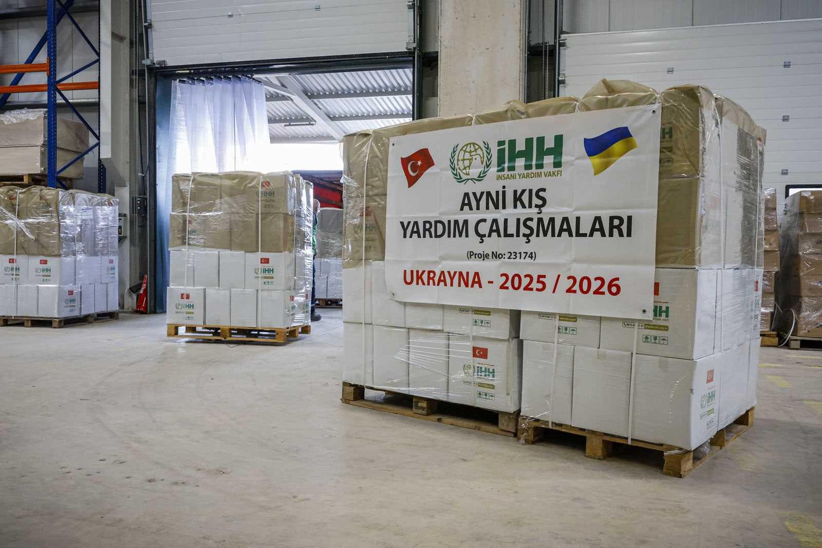 Турецкий Фонд гуманитарной помощи ИНН передал четыре грузовика гуманитарной помощи с 157 бытовыми генераторами, зарядными устройствами, одеждой, средствами гигиены и продуктовыми наборами.