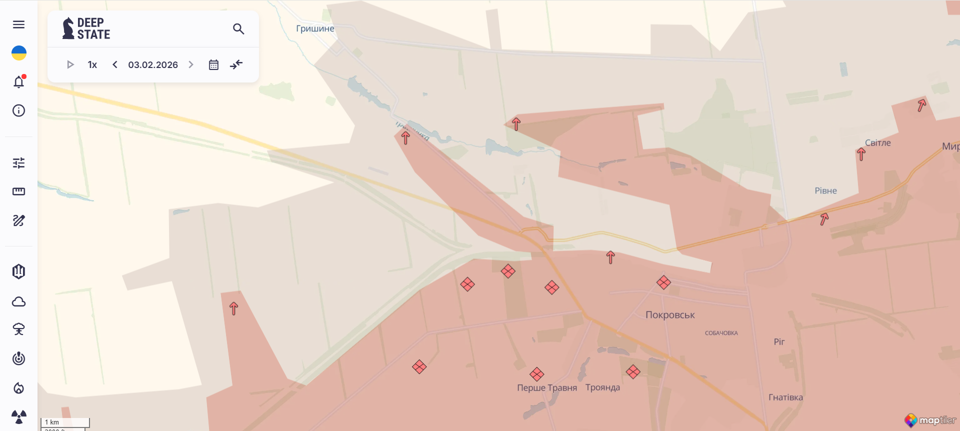 "Карта обновлена. Враг продвинулся в Покровске (административный центр Покровской городской громады и Покровского района Донецкой области), Мирнограде (город Покровского района в Донецкой области) и вблизи Северска (город в Бахмутском районе Донецкой области)", - говорится в сообщении.