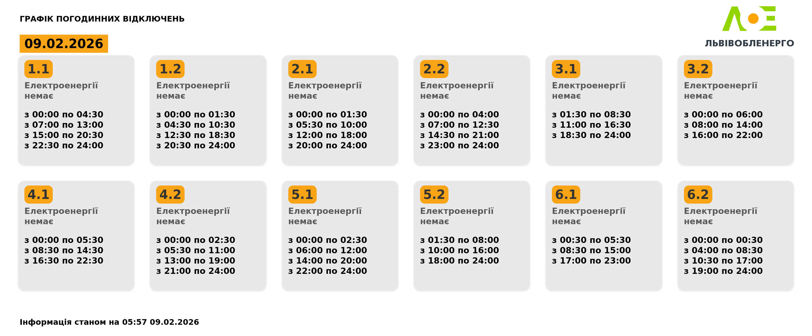 В понедельник, 9 февраля, в течение суток будут применяться графики почасовых отключений электроэнергии.