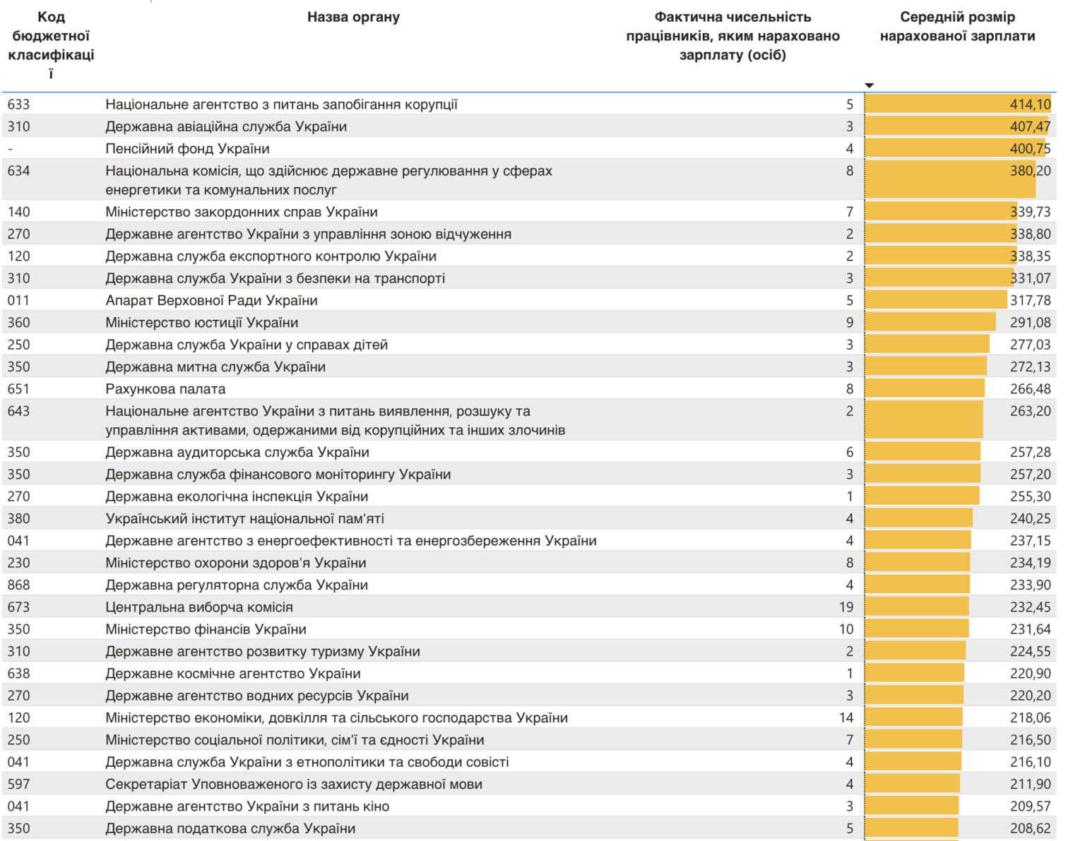 ТОП-20 державних органів влади за середньою зарплатою керівництва (тис. грн/міс.)