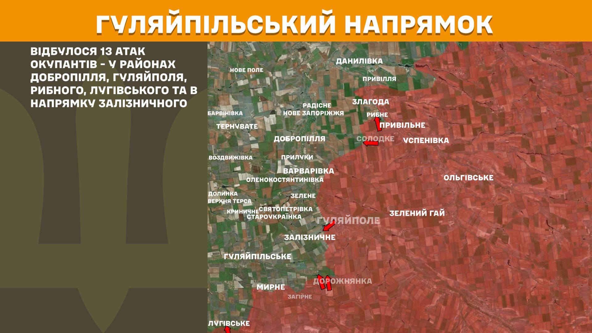 На Гуляйпольском направлении произошло 13 атак оккупантов - в районах Доброполья, Гуляйполя, Рыбного, Луговского и в направлении Зализнычного.