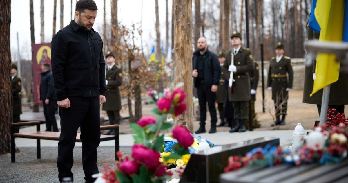 Президент Украины Владимир Зеленский почтил память защитников, погибших в боях за село Мощун, которые стали переломным этапом во время российского наступления на Киев в начале полномасштабного вторжения в 2022 году.