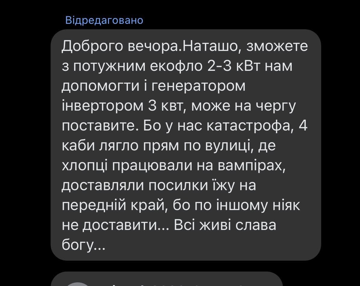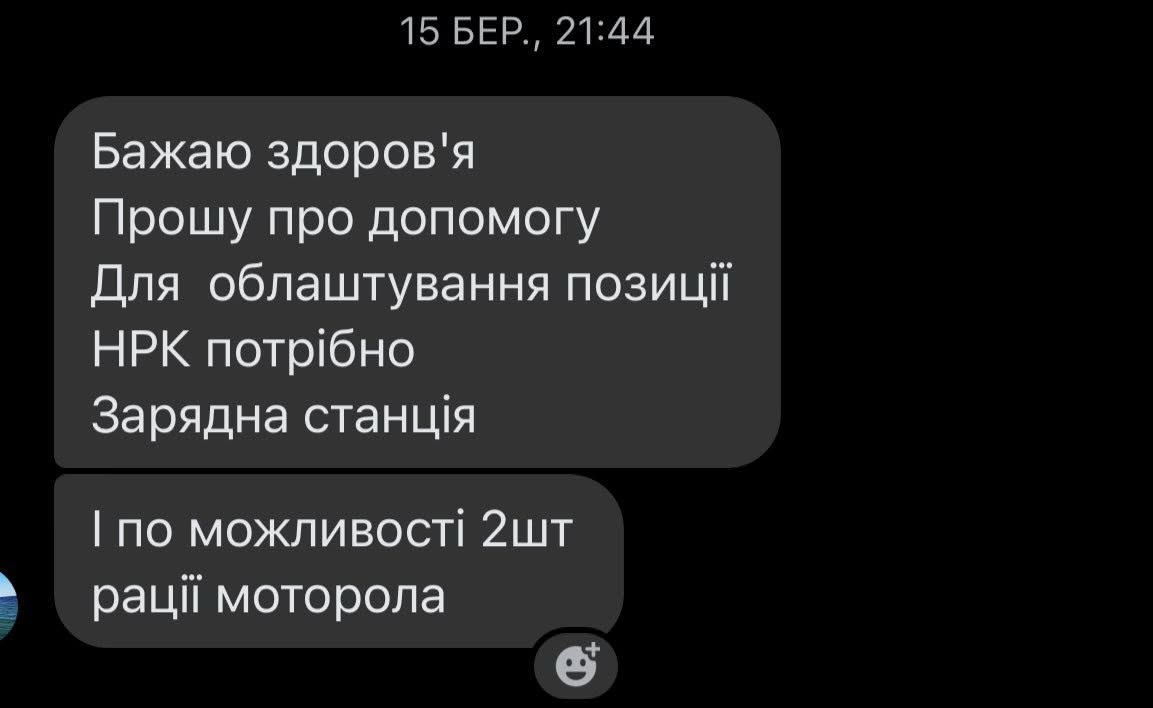 Просим помощи для наших героических бойцов, штурмового подразделения, пехоты и морпехоты, которые в кровопролитных боях сдерживают сумасшедшее наступление врага. У них сгорело много снаряжения", - отметила она.