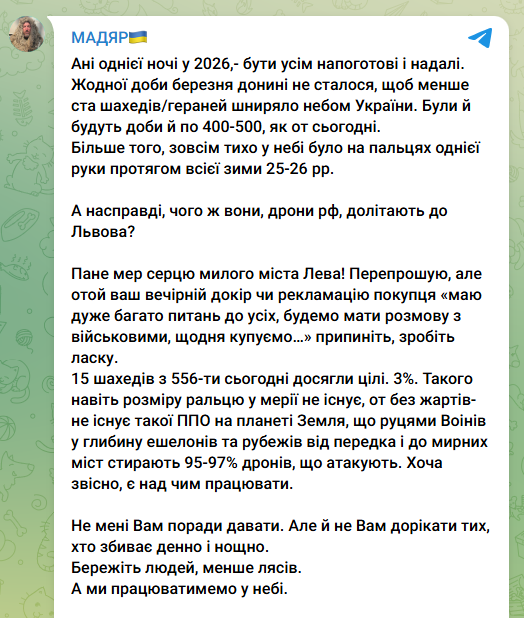 Командующий Силами беспилотных систем Роберт Бровди (Мадяр) отреагировал на заявление главы Львова.