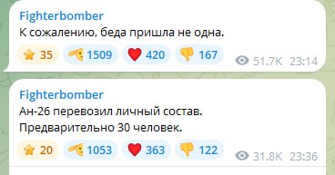 - Ранее близкий к воздушно-космическим силам РФ военный блогер Fighterbomber сообщил о потере самолета Су-34. Официальные источники эту информацию не подтверждали.