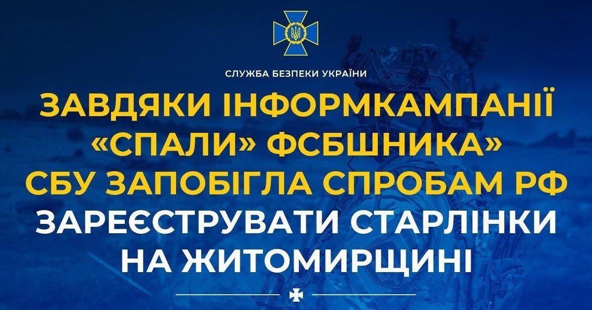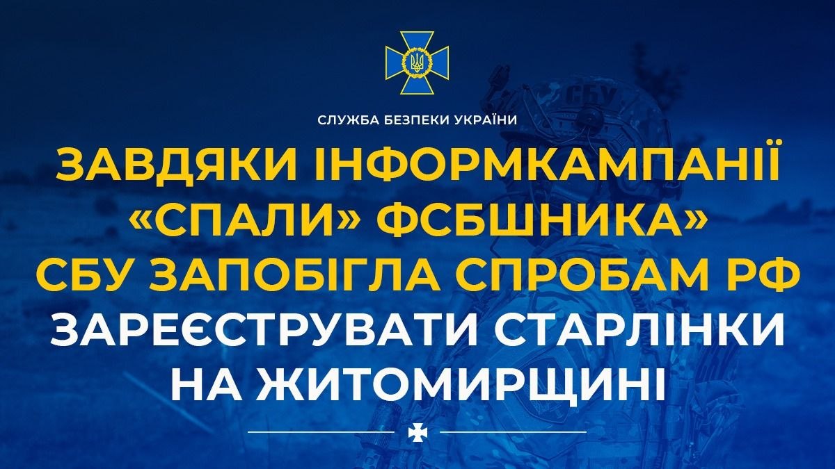 Благодаря информационной кампании "Спали ФСБшника" СБУ предотвратила попытки РФ зарегистрировать Старлинки на Житомирщине