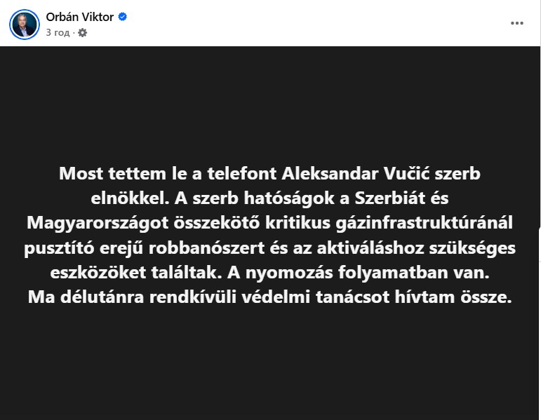 Попытка диверсии на газопроводе, соединяющем Сербию и Венгрию: Орбан созвал Совет по национальной безопасности