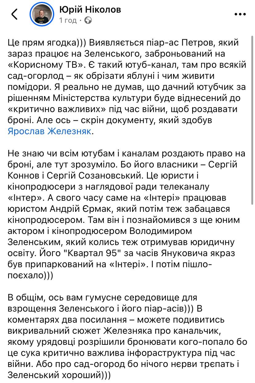 Бронь пиарщика Зеленского Петрова на канале о садоводстве: Николов указал на связи владельцев с Ермаком