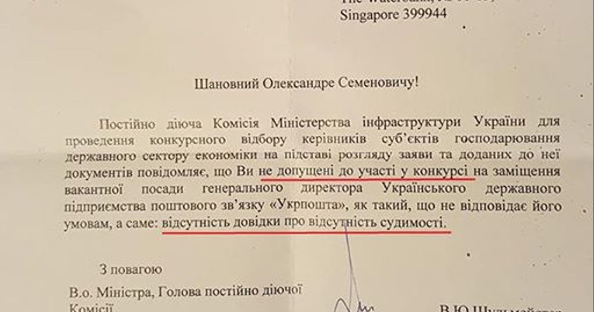 В октябре узнал, что Мининфраструктуры ищет новый менеджмент для "Укрпочты". Поскольку я руководил по всему миру масштабными проектами Deutsche Post DHL (лучшего образца почтовых реформ), решил, что это редкая возможность использовать мой опыт для реформ дома, в области, которую так хорошо знаю. Готов был вернуться, оставив успешную карьеру в Сингапуре, опыт которого, казалось бы, хотят перенимать в Украине.