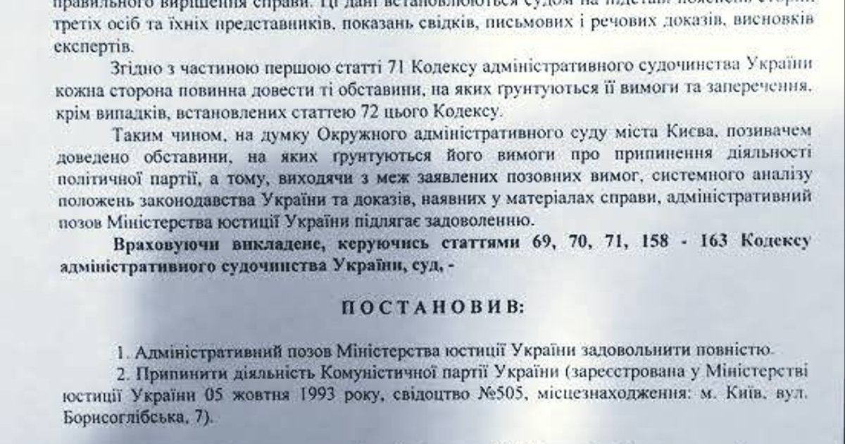 Также читайте: Киевский окружной админсуд отказался от дела по запрету КПУ и перебросил его в другой суд