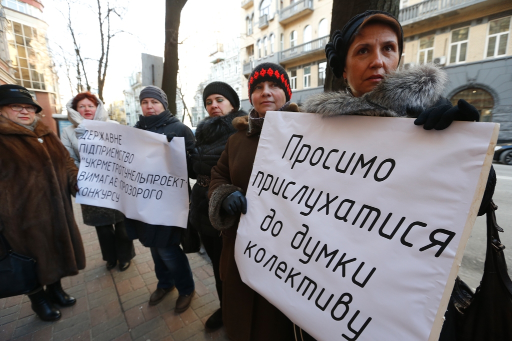 Сегодня сотрудники проектного института "Укрметротоннельпроект" вышли на акцию протеста под Министерство регионального развития, строительства и коммунального хозяйства.