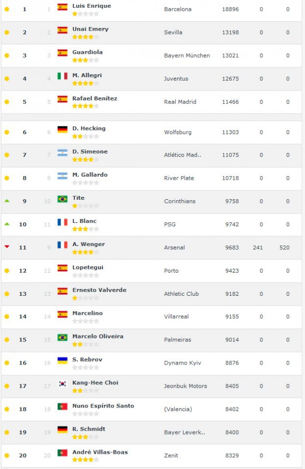 К слову, главный тренер донецкого "Шахтера" Мирча Луческу занимает 40-е место в рейтинге, а наставник "Днепра" Мирон Маркевич находится на 31-й строчке.