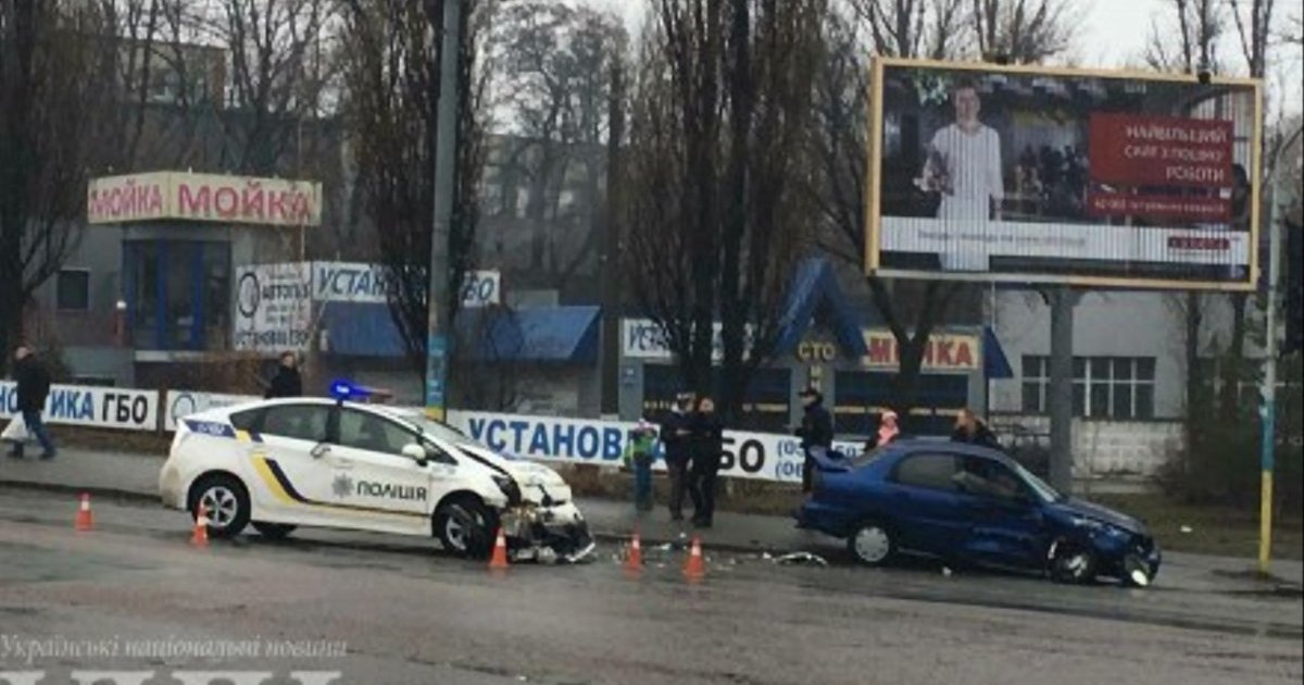 Полицейский Toyota Prius столкнулся с Daewoo Lanos в Киеве. ФОТО