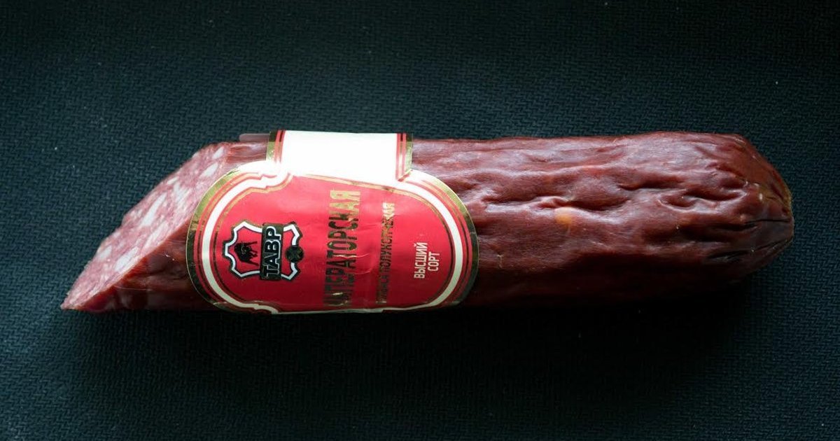 Копченая колбаса со звучным названием "Императорская" изготовлена в городе Артемовске на предприятии ООО "Тавр-Плюс" (ул. Алебастровая, 1) и продается в севастопольских магазинах по цене около 600 рублей за килограмм.