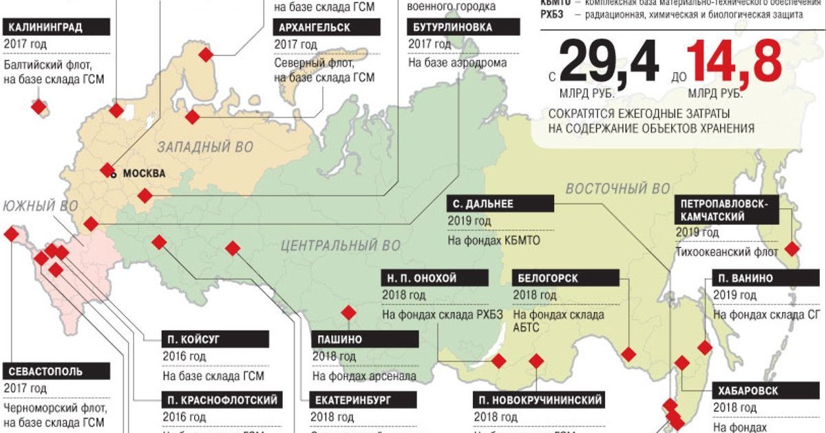 Военные рассчитывают, что строительство всех 24 ПЛК будет завершено к 2020 году. Командованию Южного (куда входит и оккупированный Севастополь), Центрального и Восточного военных округов поручено до 1 апреля начать высвобождение территорий под строительство ПЛК от материальных запасов и военной техники.