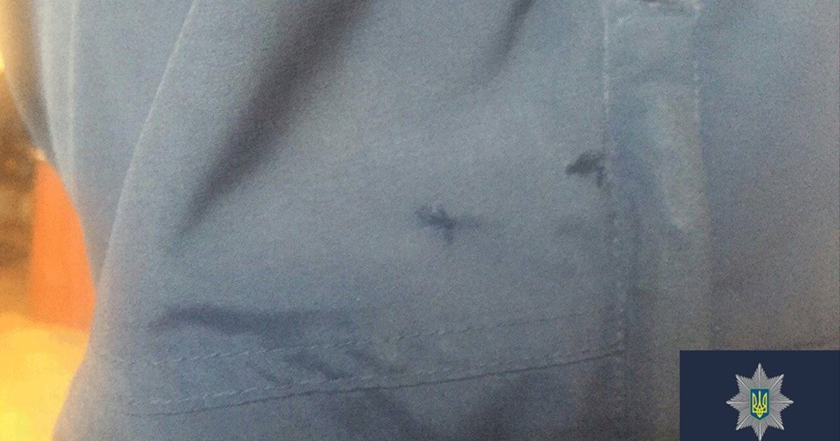Также пресс-служба опубликовала фото куртки полицейского, которая была прострелена пулей.