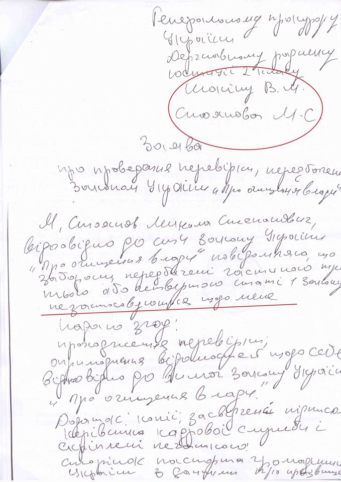 В свою очередь, заместитель министра юстиции Украины Татьяна Козаченко отметила: "Прокурор Одесской области Николай Стоянов написал в заявлении на люстрационную проверку, что он не подпадает под запреты ( люстрацию ).