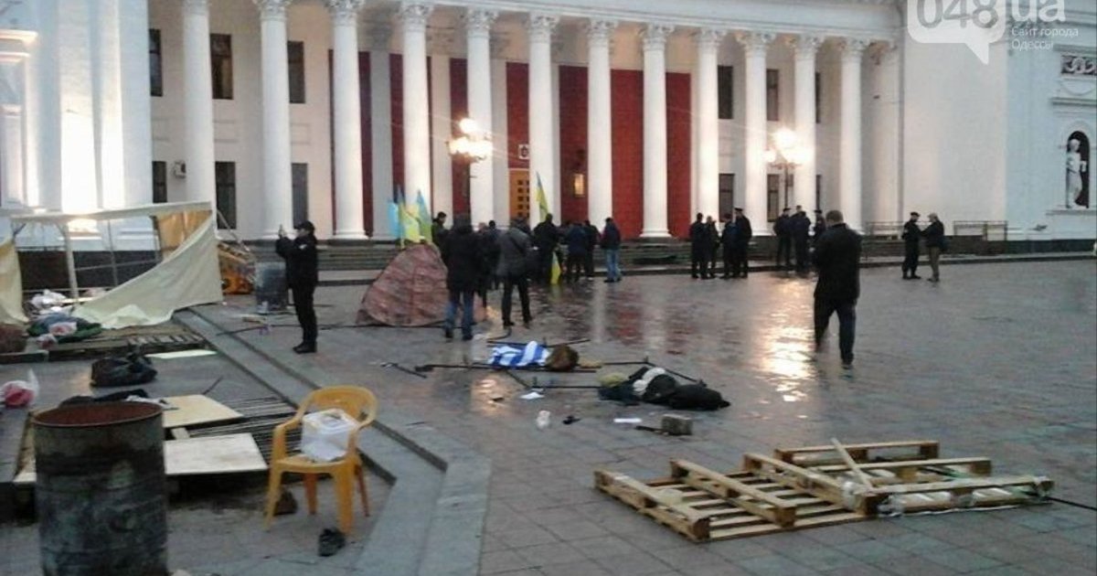 Активисты, требовавшие отставки мэра Одессы Геннадия Труханова, заблокировали здание городского совета после ночного нападения на них.