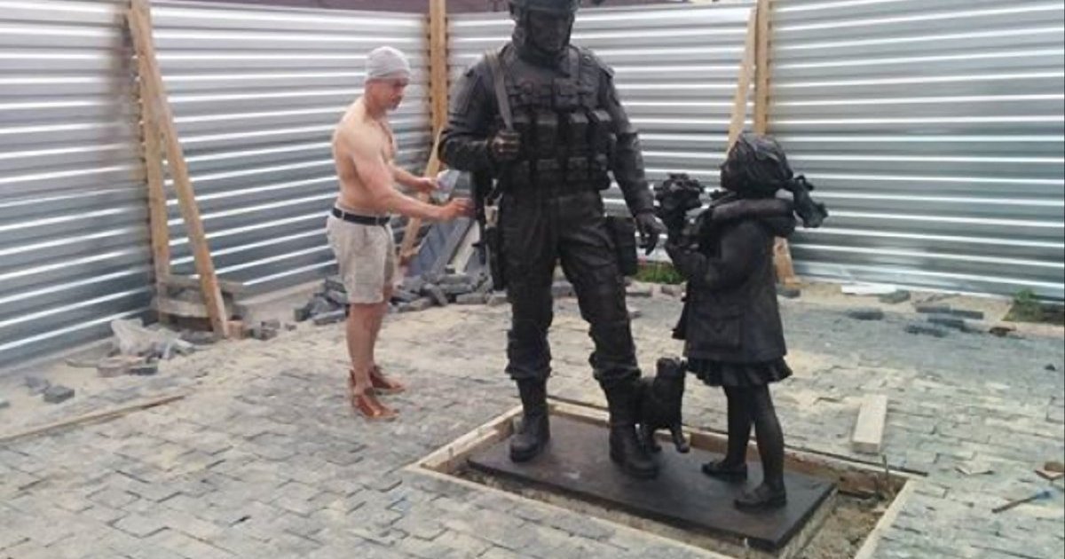 В Бахчисарае уже установили памятник "Вежливые люди", который олицетворяет военнослужащих российской армии с котом в руках. Пользователи соцсетей высмеяли памятник.