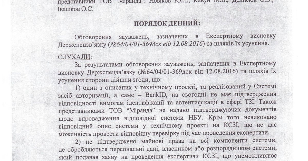Нардеп напоминает, что в воскресенье, 14 августа 2016 состоялось срочное заседание по недостаткам программного продукта с участием его разработчика ООО "Миранда". Несмотря на должное представительство со стороны НАПК и Госспецсвязи, разработчик отказался принимать замечания, о чем свидетельствует соответствующий протокол, который не был подписан представителями ООО "Миранда".