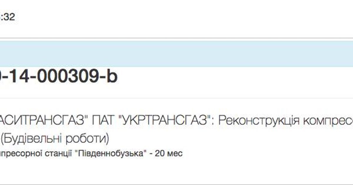 В открытых торгах на реконструкцию компрессорной станции "Южнобугская" по заказу Филиала "УМГ "Черкассытрансгаз" ПАО "Укртрансгаз" победила украинская компания ПАО "Сумское машиностроительное научно-производственное объединение" с предложением 1,321 млрд. грн.