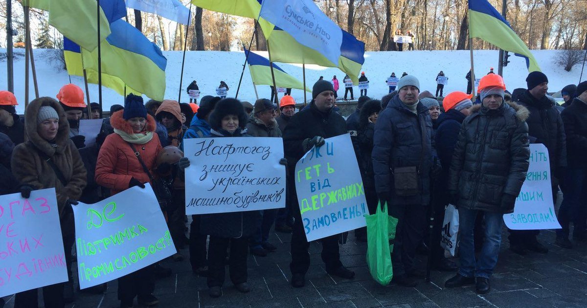 Более тысячи промышленников под Кабмином требуют не отнимать заказы у украинских предприятий.