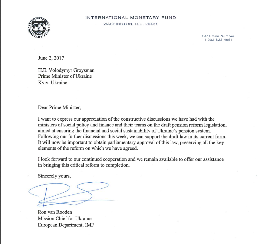 Интересная фраза - Голова Комітету підкреслила, що Прем'єр запевнив її у тому, що цей законопроект не про задоволення вимог МВФ, а про покращення життя наших сьогоднішніх і майбутніх пенсіонерів.