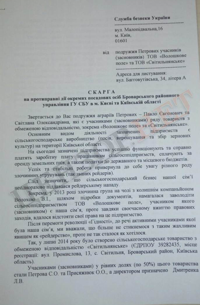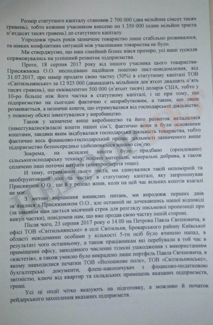 Аграрное предприятие обвиняет полицию и СБУ в содействии рейдерам. ДОКУМЕНТ