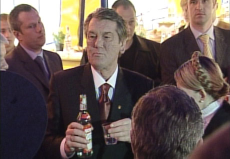Также можно предположить, что Ющенко лишь пригубил водки. Хотя, с другой стороны, за президентским столом разливали не один раз, и если бы Ющенко не пил, то скоро из его пластикового стаканчика полилось бы через край.