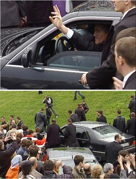Как видно из этих фото, и свидетелем того был не один человек, после не менее как получасового чествования ветеранов Ющенко лично сел за руль своего президентского "мерседеса" и поехал.