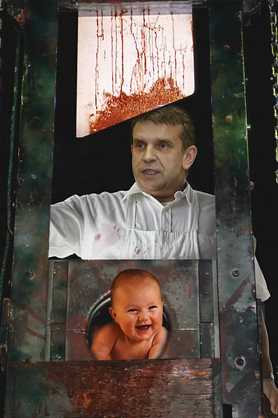 Темой политического плаката я занимаюсь уже 10 лет, примерно с 95-го года. До этого как все рисовал картины, достаточно успешно. В 1996 году на биеннале в Калининграде я получил гран-при в конкурсе станковой графики. Но плакат мне кажется интересней, актуальней. События, которые происходят в стране, меня лично интересуют. Но так получается, что художников, которые бы откликались на эти события, – не так много. Поэтому я с удовольствием который год иллюстрирую абсурдную действительность, которая нас всех окружает.Были еще какие-то мотивы, чтобы заняться этим делом?