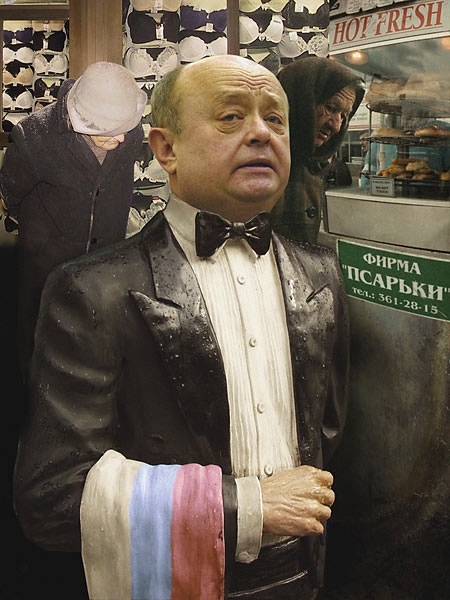 Одна из моих задач была показать москвичам вакханалию этих камикадзе, как они себя называли. И я считаю, что мы свою задачу тогда выполнили хорошо. Мне приятно, что у нас с Юрием Михайловичем как-то пересеклись общие взгляды по поводу людей, которые с минусом работают для России. У меня на выставке не представлено ничего связанного с Каспаровым - я прочитал запись его лекции, которая была опубликована на «Полит.ру». Мне он нравится как политик, но он - не очень в формате этой выставки, потому что я иллюстрирую конкретные события, а то, что происходит с Каспаровым – мне пока не очень понятно. Я думаю, что обиделись на меня много людей, которых я считаю дружественными по взглядам. Диме Муратову наверняк, не понравилась работа «Цирк уехал, а клоуны остались», потому что там есть персонажи из «Комитета 2008», которых он поддерживает. Пожалуй, вот что я еще упустил… Мне симпатичен Явлинский, он открывал одну из моих выставок 9 лет назад. И он мне симпатичен, и «Яблоко», и молодежное их движение симпатичное. Про остальные партии не могу этого сказать. Я хорошо отношусь к Юрию Михайловичу, но «Единая Россия» мне не очень нравится.