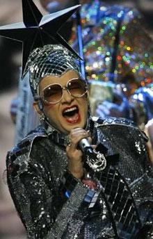 На втором месте - украинский музыкальный персонаж Верка Сердючка (Андрей Данилко) с композицией Dancing Lasha Tumbai.